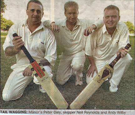 Trevor Cummings pulling to leg...note Neil'Biscuit'Wooller...not so much his backing-up this time..but his mullet haircut !