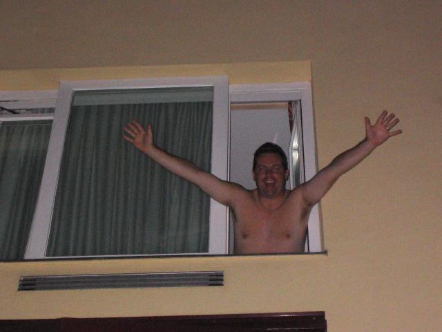 Shrewsbury tries to hang out the window, but can't.