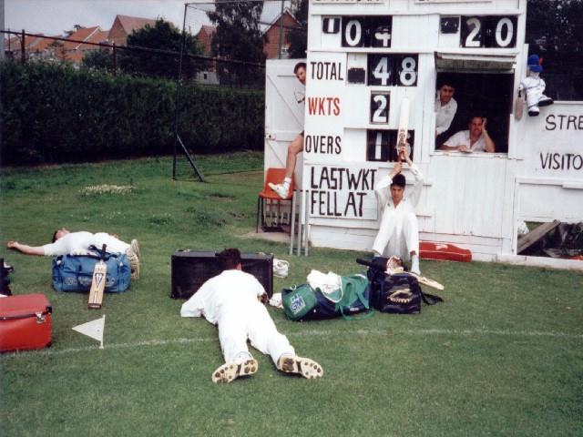 Street Cricket Ground , 1st July 1998 Nelly (picking nose) Froggy , Readie (slippers) Skanks (walking off) Rubbish (going in)